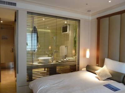 落ち着いたフロント、お部屋もお洒落でバスユニットもガラス張りで申し分ない綺麗さ。