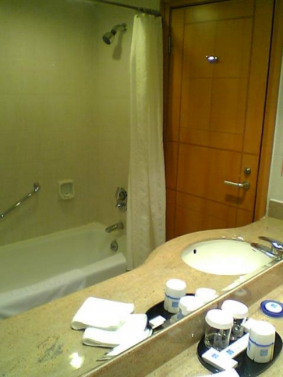 地下鉄2号線と4号線が交差する「世紀大道」の駅から、チンタラ歩いても10分以内。今流行りの最新の客室というわけではないが、落ち着いていて、デスクも書斎みたいな感じでよい。バスルームも狭いながら、シャワーブースも独立してある(但し、この写真の部屋はコーナーに位置していて、チェックインの際に、アップグレードしたお部屋ですと言っていたので、スタンダードだと、ないかも…)。アメニティも完璧でバスローブやアイロンなども完備。近くにはマックやケンタッキーもあるし、もちろんコンビニも。15~20分も歩けば、ヤオハンもあるので、ちょっとした買い物や時間潰しが出来ます。フロントの人も、ハイアットみたいにツンケンしてなくて、いい感じです。お勧め!