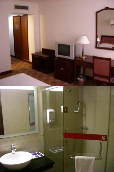 地下鉄1・2号線の「人民広場」から徒歩5分位。但し、1・2号線のホームは離れている為、2号線からだと10分位はかかる。入り口は漢口路に面している為、南京東路からだと2本目の道。とあるサイトでは、浴槽付きと紹介されているが、画像のようにシャワーのみの部屋もあるので、予約の際に注意が必要。アメニティは必要最低限で、カミソリはなし。ドライヤーも冷蔵庫も寝間着もなし。タオル類は、かなりくたびれている感じ(不潔というわけではありません)。ただ、部屋は日本のビジネスよりかなりゆとりがあり、天井も高く、窓も大きい(しかし外はお隣のビルの壁)ので圧迫感はなく、立地条件は最高なので、5000円前後で泊まれるならば、もうけものかも。