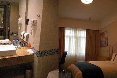 「InterContinental Hotels Group」のHPから予約し、約4200円という激安ぶり。立地は地下鉄3・4号線の「曹楊路」から、武寧路に沿って歩いて15~20分ぐらいの所。実際歩いてみると、武寧路は店が並んでいる(マクドナルドやケンタッキーもあります)ので、のぞきながらブラブラ歩けばそんなに遠くは感じない。武寧路が蘇州河と交差する所を河に沿ってさらに右(曹楊路方向)に進む(この路が光復西路→はっきり言って路地)。が、ここは真っ暗に近いので夜はちょっと恐いかも。ここの橋の所には巨大カルフールがあるので、日常の買い物は完璧!お部屋は新しいだけあって、とてもセンスがよく、予想以上に広くて心地よい。シャワーだけだが、水回りもコンパクトにまとまっていて使い勝手もgood。このホテルは朝食付で、タダにしてはそこそこ品数もあった。朝の8時から9時半まで、中山公園までのシャトルバスがある。タクシーの運ちゃんは、ほとんど分かっていないので、フロントに積んであるパンフをもらって、その裏面の地図を見せるのが無難。でもなんで、こんな所にホテルを作ったのか…とっても謎。。。しっかし住空間はよかったので、歩くのがヤじゃない人や、移動は全てタクシーなのっていう人にはよいホテルだと思います。お試しを!
