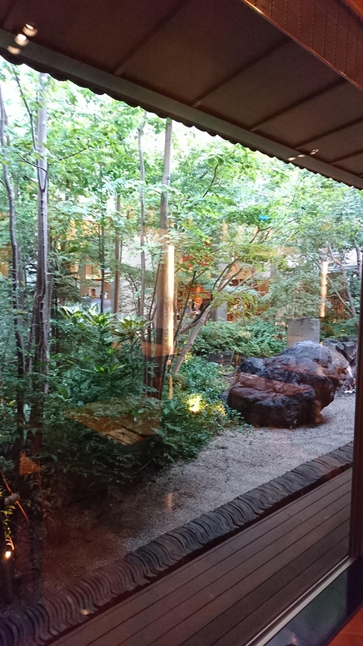 朝食は、混んでいたため和食のレストラン側に通されましたが、中庭の緑を見ながら食べることが出来ました。