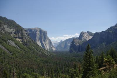 ツアーでトンネルビューを観光後、ヨセミテバレーロッジでツアーと別れて、自分たちでシャトルバスに乗りミラーレークやマジェスティックホテルに行きました。翌日は、ブレーシャーポイントへのツアーに参加しました。このツアーでは、帰りにトンネルビューに寄ったので、2日連続でトンネルビューからの眺めを見ることが出来ました。