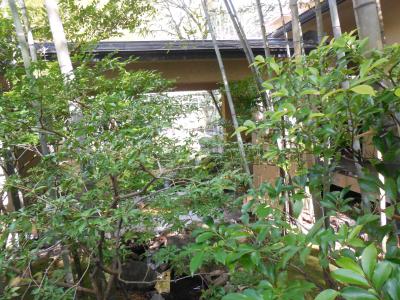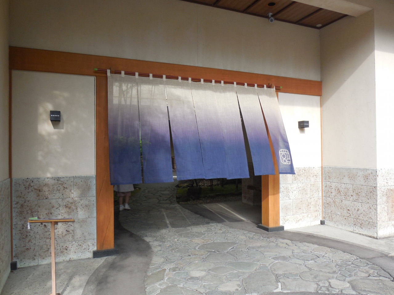先ずは、アプローチの風格ある長屋門の”のれん”をくぐり竹庭から館内に入ると天井が高く窓が大きく開放感のある1階ロビーで抹茶サービス(和菓子付)を頂きながらチェックインを済ませて4階の客室へ・・・