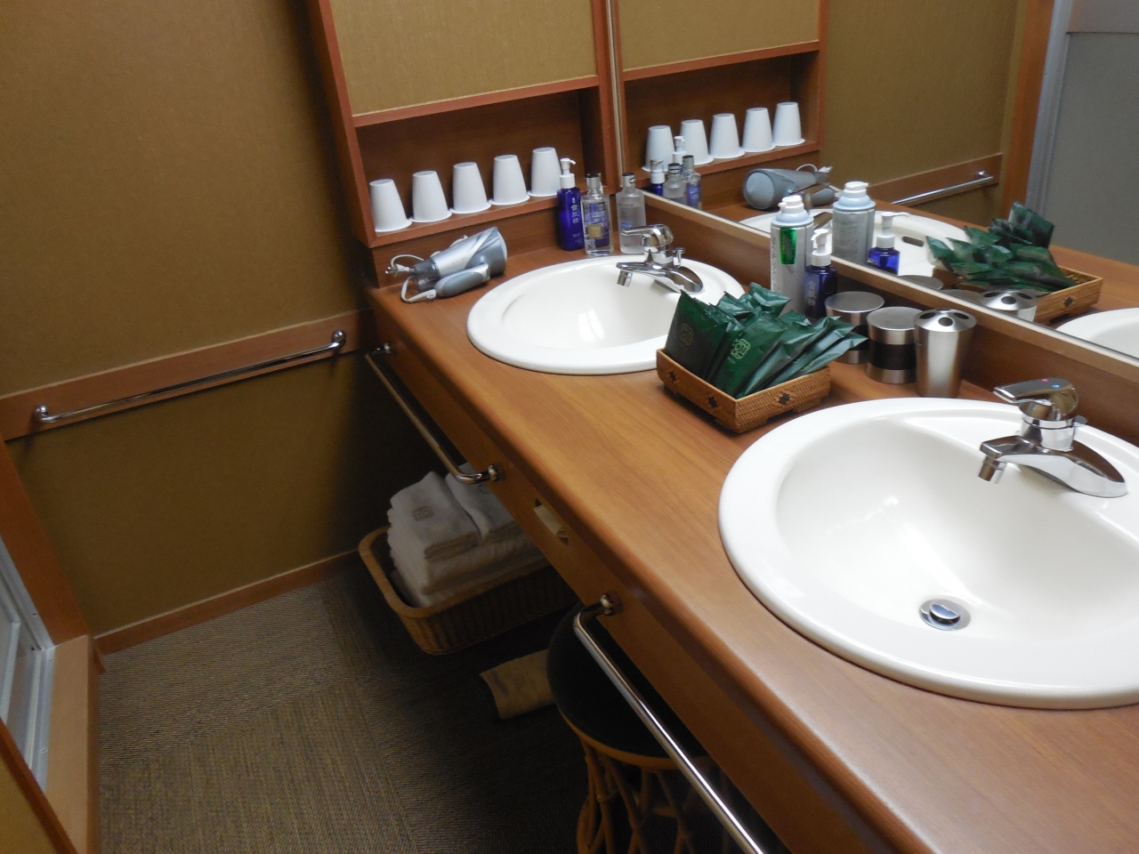 宿泊した部屋は、「和室二間タイプ」(10帖+4.5帖:広縁付き)、洗面所も洗面台に洗面ボウルが2台並んでおり5名での利用でもゆったりとした造りの客室でした。