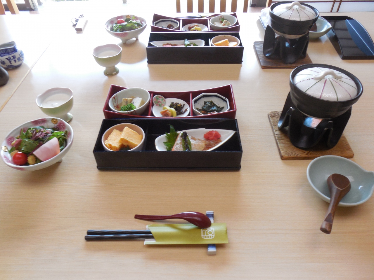 朝食は、和食で前日の夕食を終えた時に”ご飯”と”お粥”をお好みに合わせて選ぶことができます。ご飯を選びましたがご飯がとても美味しかったです。