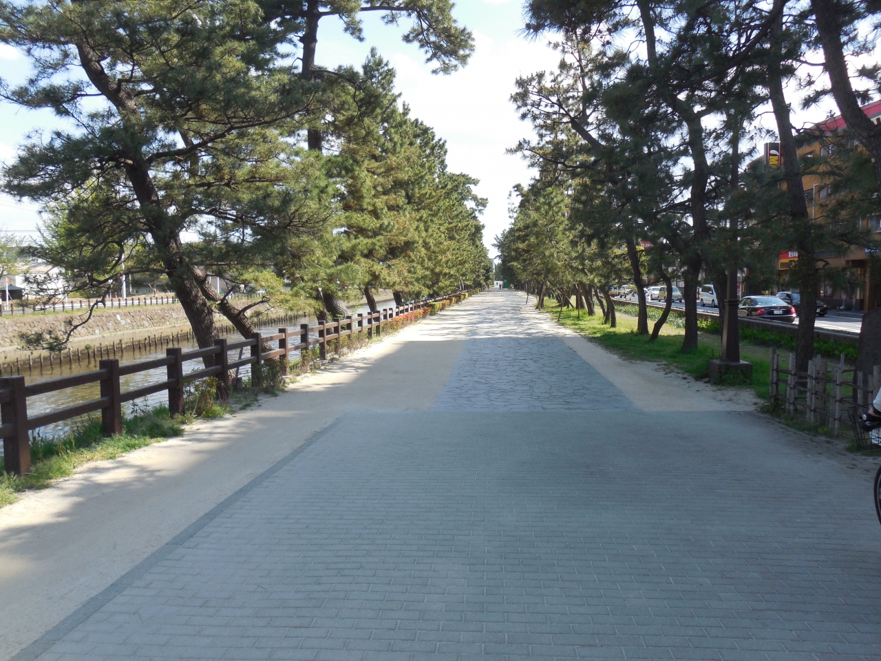『草加松原遊歩道』は、県道49号足立越谷線(旧日光街道)に沿って綾瀬川沿いの南北に広がる松並木の遊歩道として、南側の綾瀬川舟運の船着き場を再現して整備された「札場河岸公園」から、北側は「東京外環自動車道」手前までの約1.5キロメートルまで続いています。