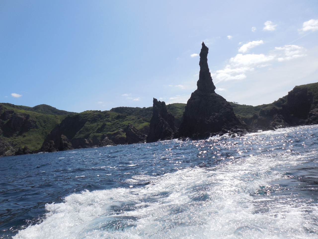 チャーターした遊覧船に乗船し中ノ島(海士町)「菱浦港」を出港して隠岐諸島の島前・3島(西ノ島、中ノ島、知夫里島)で囲まれている穏やかな内海を進み、西ノ島のほぼ中央南側(内海)と北側(外海・日本海)を結ぶ「船引運河」を抜けて西側に続く目的地の『国賀海岸』へと向かいました。