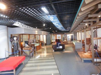 「宿場町」ゾーンを過ぎると左手に「忍者の里」ゾーン、正面の池に架かる「両国橋」を渡ると賑やかな「商家街」ゾーンに続き、いろいろな体験ができる店舗や食事処などの飲食店やお土産屋が建ち並んでいます。「商家街」ゾーンの奥には、花魁のお座敷遊びを劇にした「文化劇場 若松屋」、水芸の「水芸座」、人情劇場の「両国座」があり、それぞれ見て廻りました。「文化劇場 若松屋」では、観客の中から予告なしに1名が舞台に参加したり、萩本欽一さんがプロデュースした笑いあり涙ありの人情劇やそれぞれの芝居小屋で入場した際に配られた紙で最後におひねりとして舞台に投げたりして、どれも楽しめる芝居構成でした。
