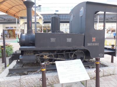 家族旅行で17年程度前に「熱海駅」を利用して以来の久しぶりの「熱海駅」で、当時の記憶では『軽便鉄道機関車』の置かれていた場所が「熱海駅」改札を出て左手側にある足湯脇の植栽に囲まれてあったと思いますが、現在は「熱海駅」改札を出て右手側にある「平和通り名店街」と「仲見世名店街」入口付近の広場に置かれていて近くから細部を360度ぐるりと見ることがでるようになっています。