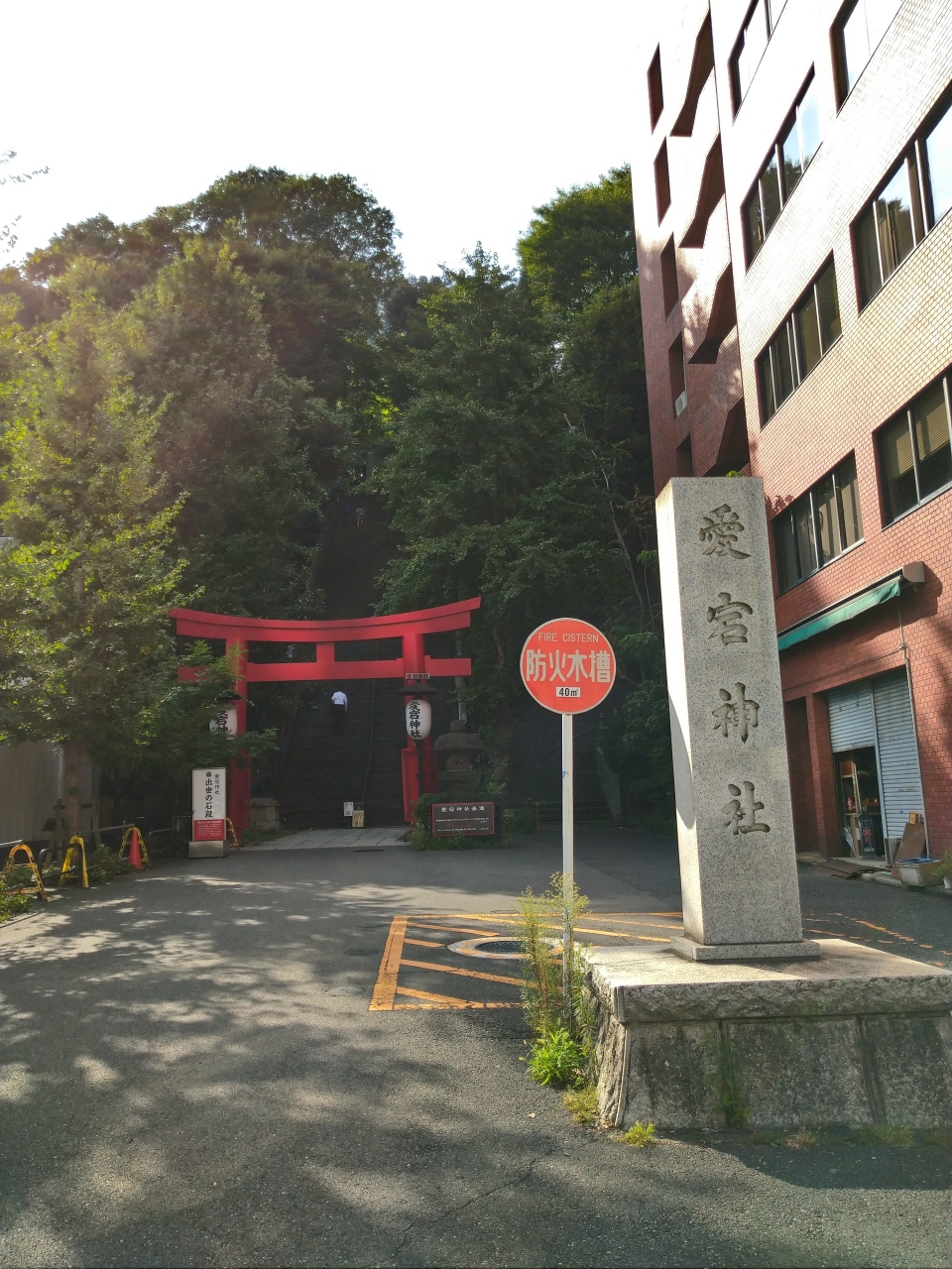 東京23区内における自然に形成された丘陵の最高峰とされる「愛宕山」(標高25.7メートル)の頂上部分に鎮座する『愛宕神社』(港区愛宕1丁目)の参道となる参拝ルートは、「都道301号」に面した「男坂」と称される傾斜角およそ37度の急傾斜な86段からなる石段の「表参道」および「表参道」の北側(右脇)に「男坂」より傾斜が緩やかな109段の石段「女坂」があり、さらに「都道301号」に面して”愛宕神社車”と記載された鳥居が設置されている自動車が通行可能な「愛宕新坂」があります。