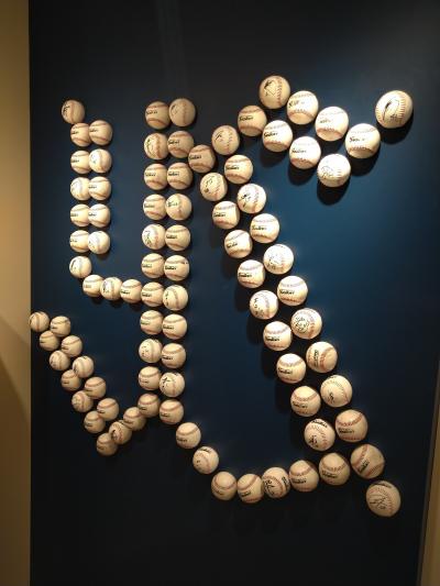 コンパクトな内部ですがトリックアートなどの撮影スポット、選手・つば九郎のサインボールなどの展示物があります。