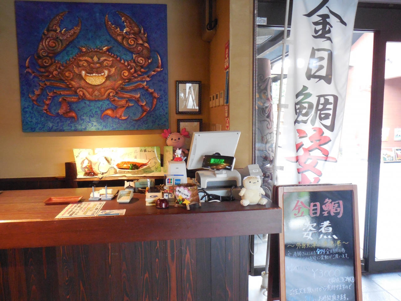 食事処では、古民家を思わせる独特な雰囲気の海幸料理等を揃えた和風レストラン、和風レストランと同じ建物内にある新鮮な地魚にこだわりの回転寿司、和風レストランと別棟でオープンテラス席がありくつろげるピザ、パスタ料理等のカフェ&ダイニングがあります。