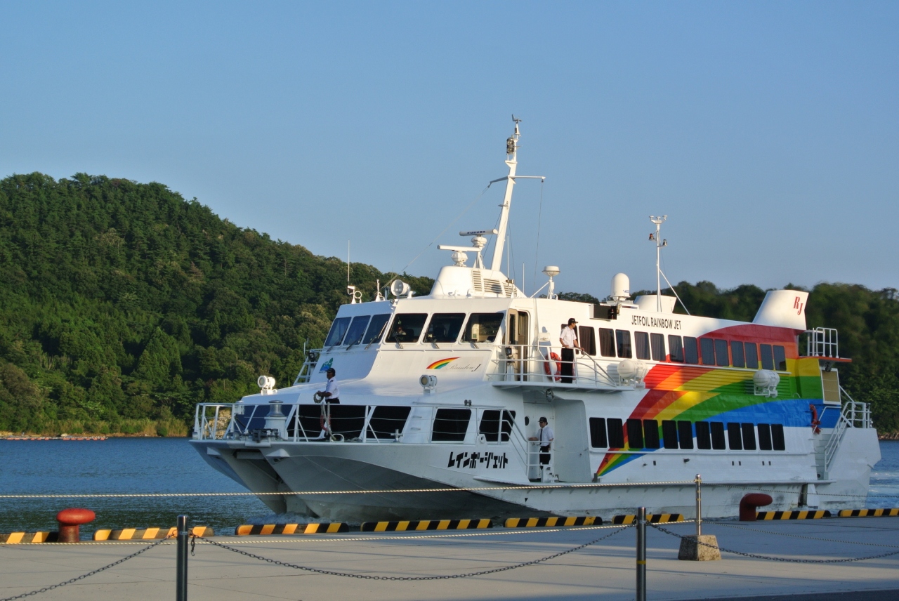 ちなみに『高速船レインボージェット』以外の大型フェリーを利用した場合の所要時間は約70分程度です。