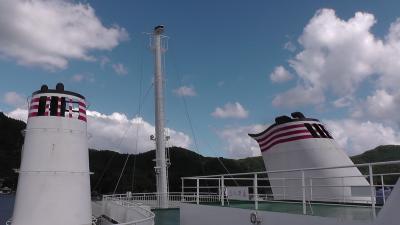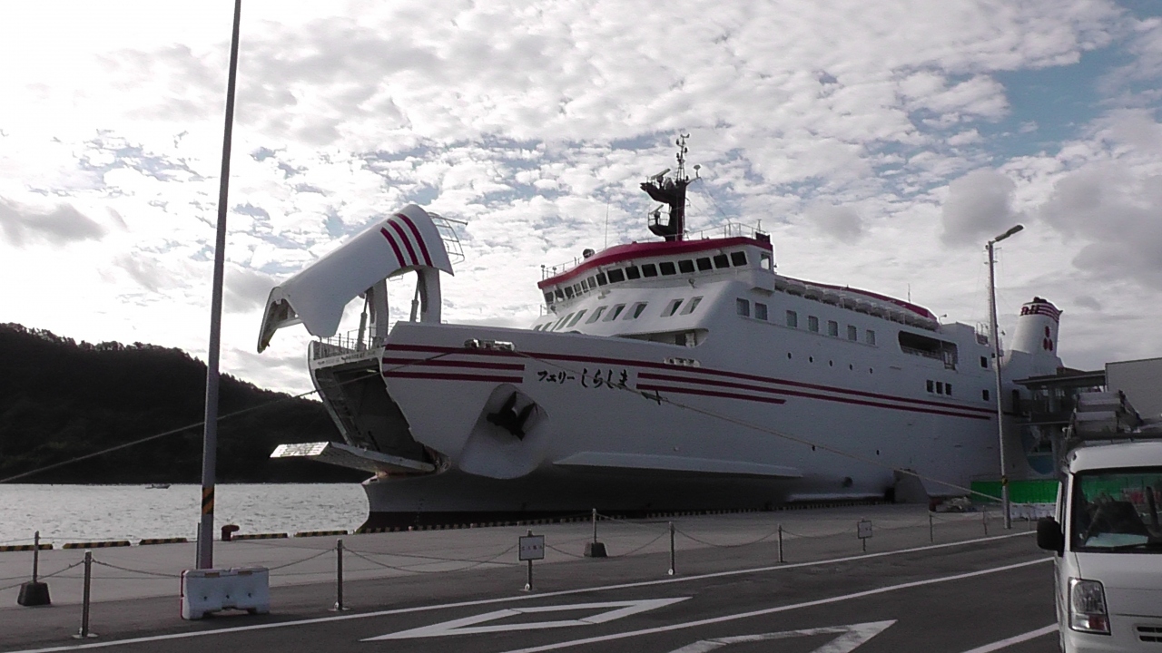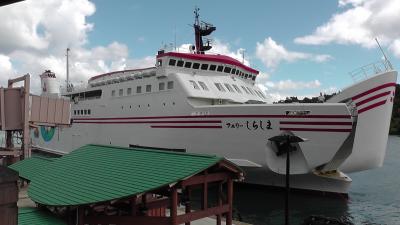 気象状況による欠航などにより、予定していた乗船日時の変更もあり、島後(隠岐の島町)西郷港から島前の中ノ島(海士町)菱浦港までと中ノ島(海士町)菱浦港から本土(鳥取県)境港までのフェリー移動は、どちらも大型カーフェリー「しらしま」(島後の西郷港を起点に本土の境港まで1日1往復の運航)の2等室での利用となりました。