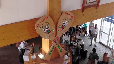 隠岐諸島と繋がる隠岐汽船の『境港フェリーターミナル』は、4階建ての複合施設『みなとさかい交流館』内にあり、JR境線(米子から境港)の「境港駅(鬼太郎駅)」に隣接しているます。