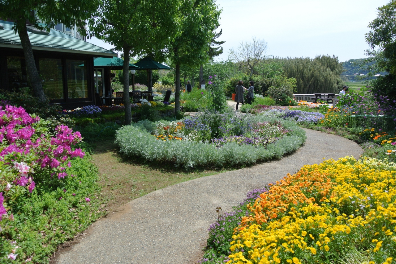 "カフェレストラン"にはオープンテラスもあり、テラス周辺の庭に咲く花や外の風景に癒されます。