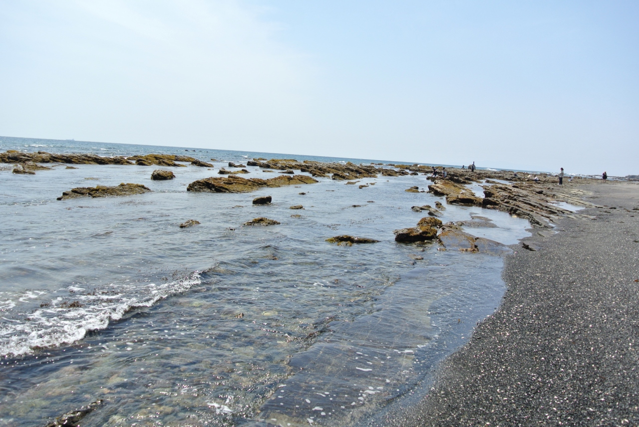 道の駅『ちくら潮風王国』の敷地は海に面しており、専用駐車場・芝生広場から磯遊びにうってつけの岩礁が広がっている岩場の海岸に降りることが出来ます。