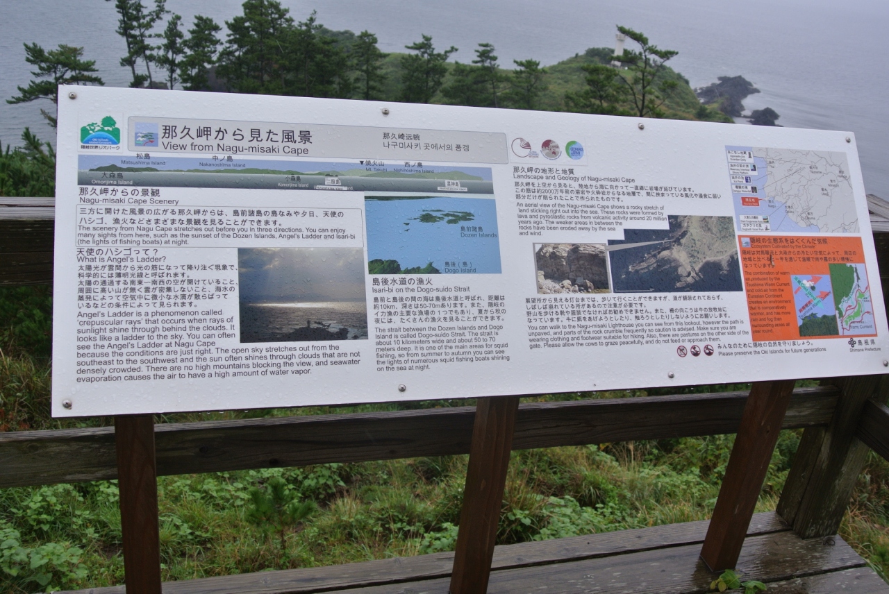 天気の良い日は、展望台から10km先の島前の島々を望むことが出来ますが、今回訪れた際の天候は雨だったため絶景を楽しむことは出来ませんでした。