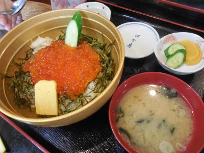 今回注文した料理は、子供達が「いくら丼」、大人3名は単品で「名物地魚のあら煮(大皿2~5人前)」と「地魚なめろう」を注文しました。