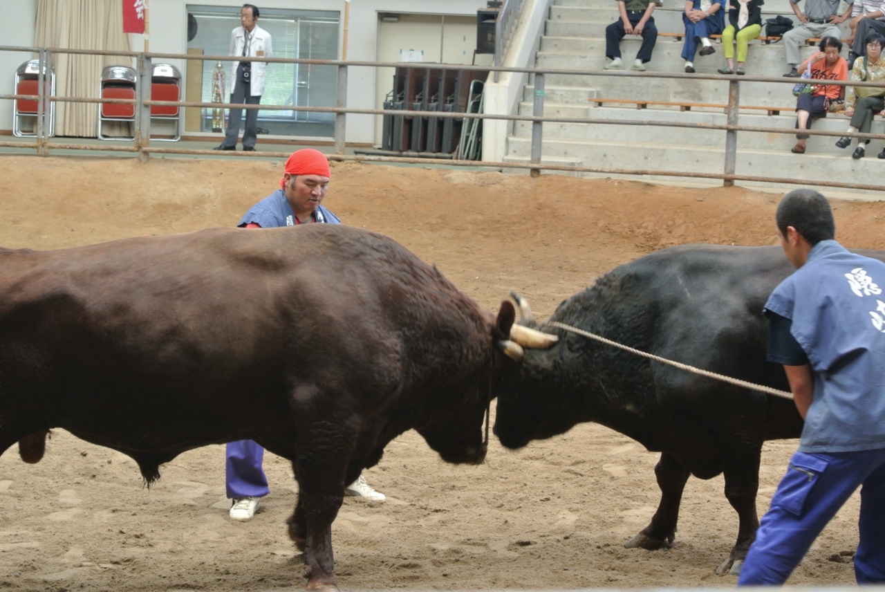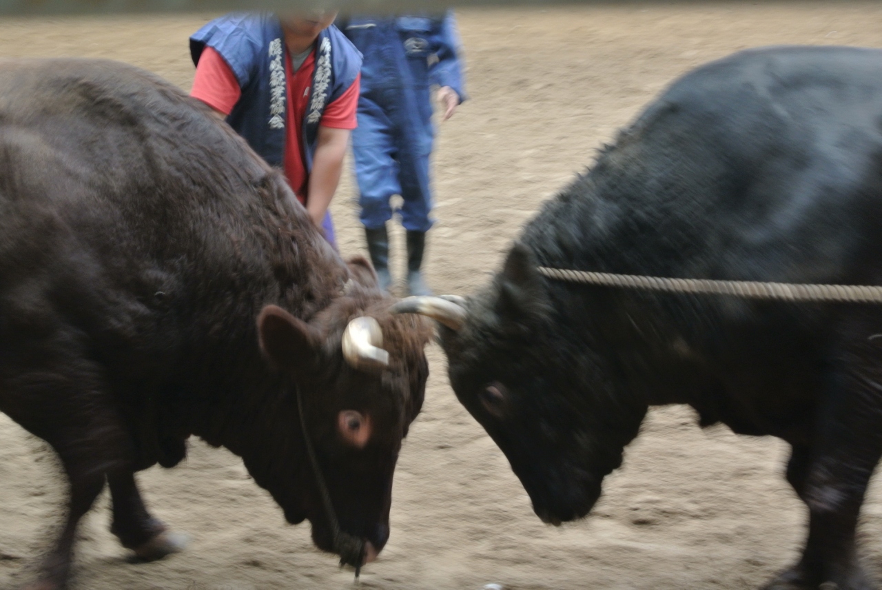 本場所の場合は、真剣勝負で一方の牛が逃げ出すまで行われ勝敗が付くまで1時間以上の大勝負もあるそうです。