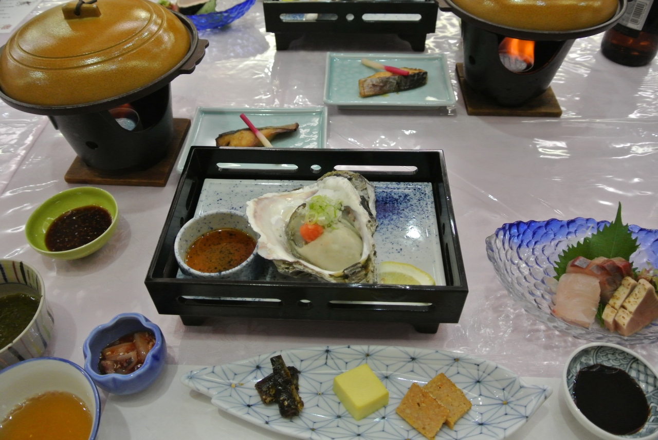 食事は、海士町のブランドである大きな岩ガキが印象的です!大変美味しく食べ応えがありました。