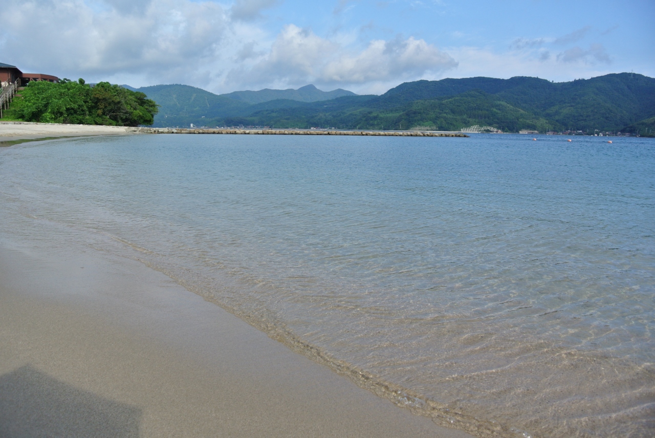 ホテルの施設ではありませんが、ホテル棟脇のバーベキューハウスの下に海士町海水浴場レインボービーチがあります。早朝に散歩したのですが、波の穏やかな白いキレイな砂浜でした。