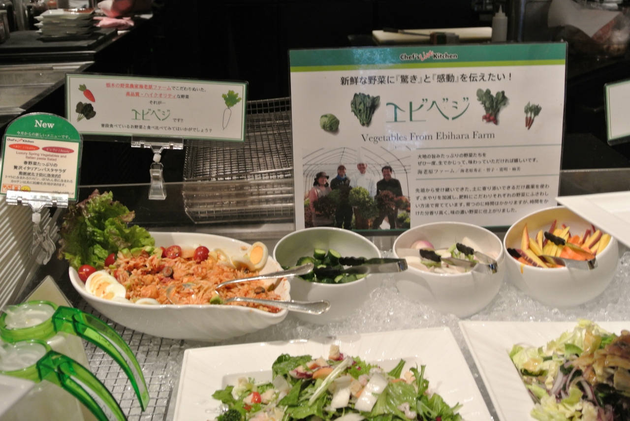 『シェフズ ライブ キッチン』は、“ヘルシー・ビューティ・フレッシュ”の3つのコンセプトにライブ感あふれるブッフェスタイルを売りにしているレストランでテレビ等でも紹介されているので店内は女性客を中心に混んでいました。