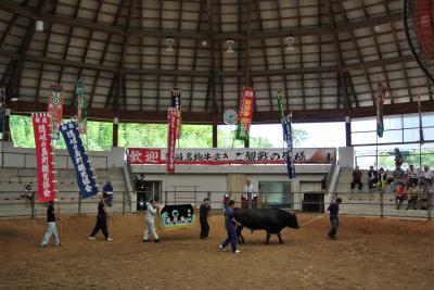 本場所大会は年4回の開催ですが、『観光牛突き』として年間多数開催しているので観戦することが出来ました。