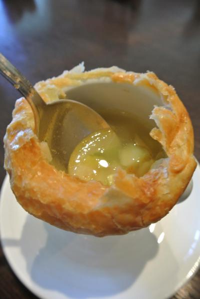 店内の席に着くとまずはコラーゲンたっぷりの美肌スープが運ばれてきました。
