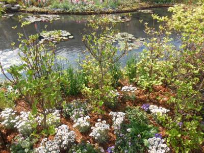 屋上は7つのゾーンから出来ており、緑のメインゾーンである空中庭園「睡蓮の庭」は印象派画家“クロード・モネ”“ポール・セザンヌ”の絵画を連想させる水辺・太鼓橋があり、池に咲く睡蓮、シダレヤナギ、色々な種類のバラや季節ごとにさまざまな草花で癒される空間となっています。