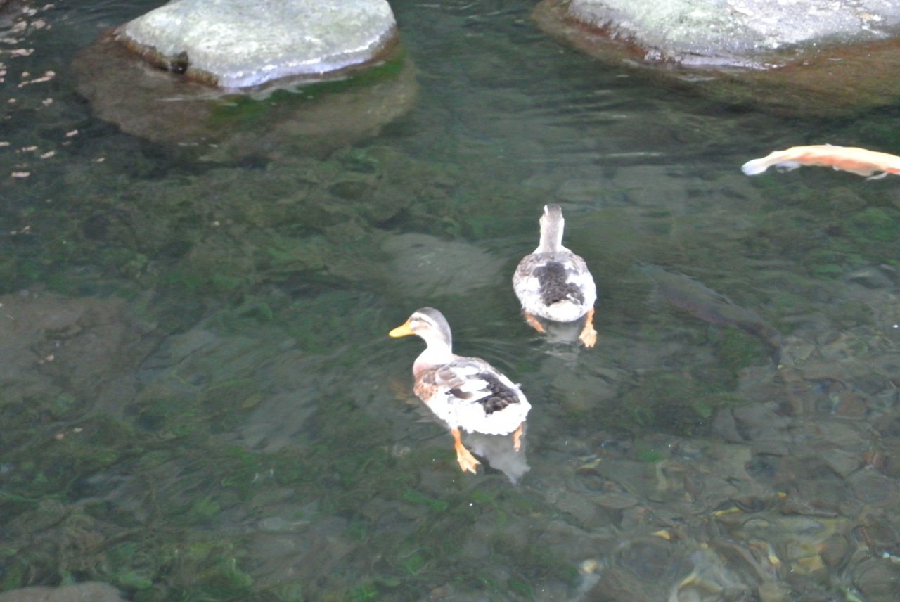旅館敷地内には、二つの滝があり滝の間の階段を登った場所に神社(水の守り神・縁結びの神社)があります。浴衣を着たまま散策出来るので、チェックイン後に夕食までの時間(温泉を利用前後)に散策をお勧めします。また、池にはアヒルが住み着いており小さな子供も飽きることはないと思います。