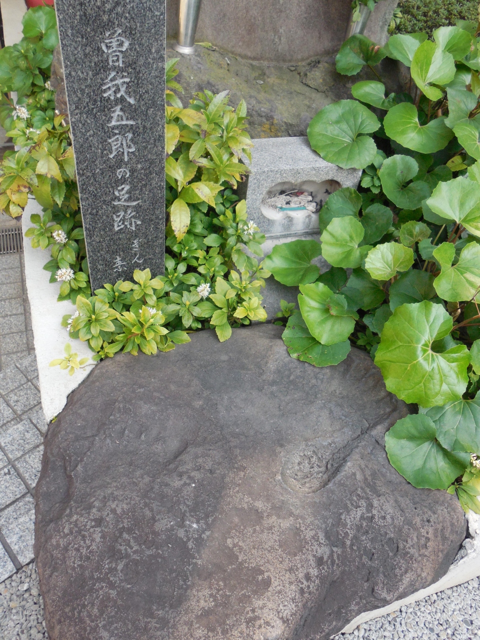 その他に本堂1階出入口脇に『曽我五郎の足跡石』(曽我五郎は、日本三大仇討ちの一つである曾我兄弟の仇討ち、歌舞伎、能、人形浄瑠璃の演目『曽我物語』の主人公。若くして一生を父の仇に終始した曽我兄弟の五郎が老母を背負い、工藤祐経の菩提と老母父の仇の報告をした帰りに残されたものと言い伝えられています。)や『尺八塚』があります。