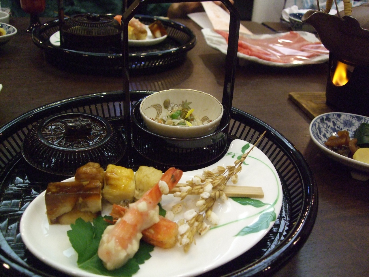 食事は、各部屋ごとに仕切られたスペースで会席料理を頂きました。