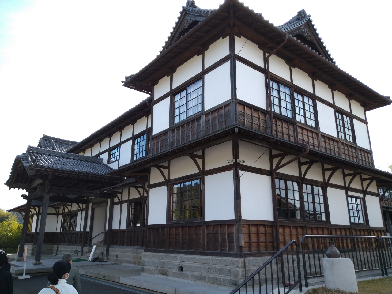 今回は、和歌山市在住の方の案内で『旧和歌山県議会議事堂』に立ち寄りましたが、間口31メートル ・奥行47メートル・建築面積1,239平方メートルにおよぶ大規模な本瓦葺き屋根に漆喰塗りと下見板張りの外壁仕上からなる和風意匠を基調とした木造2階建ての外観に圧倒されながら車寄せ部分の寺社建築の屋根を連想させる正面出入口から入館し館内を見学して廻りました。