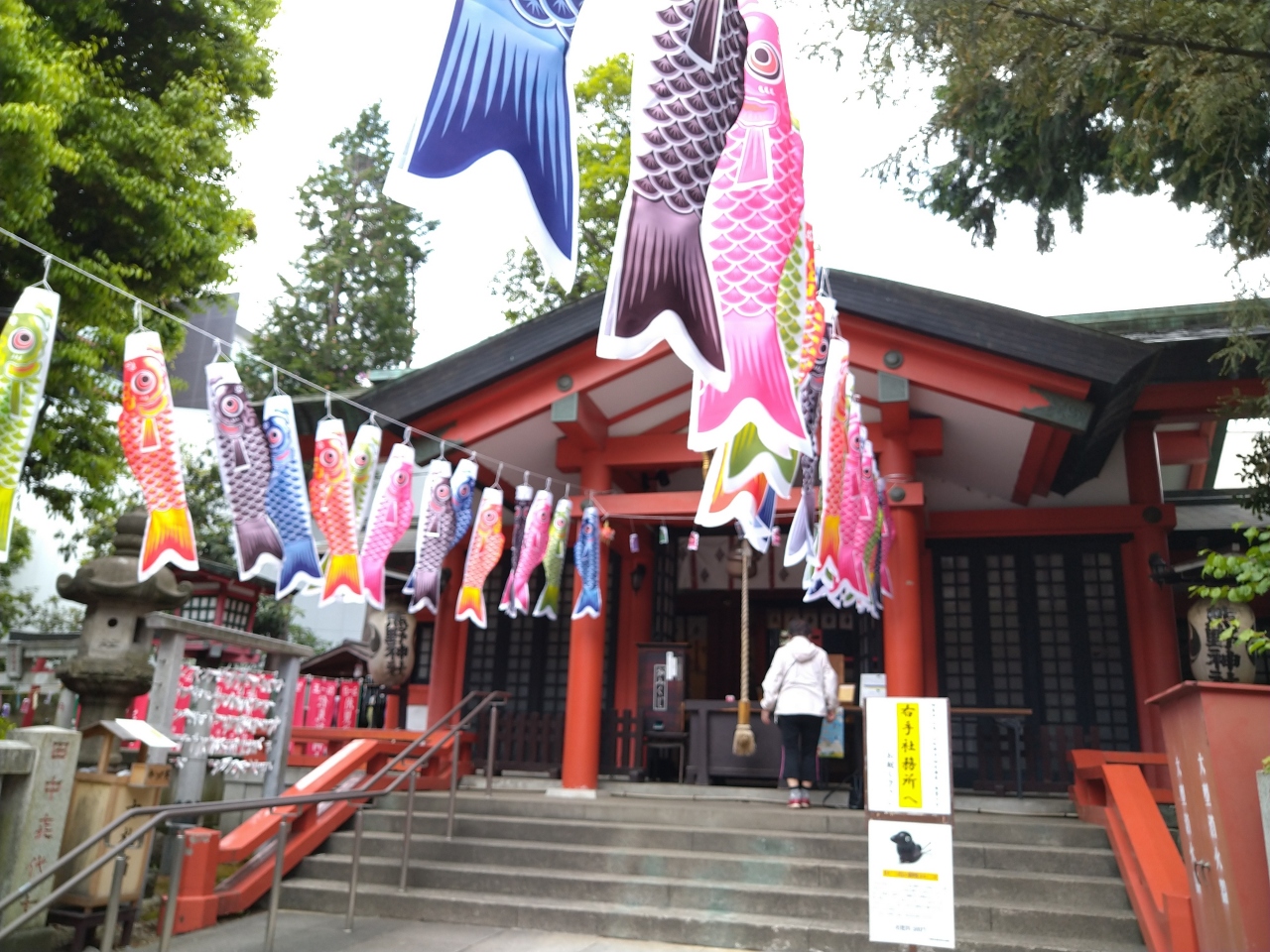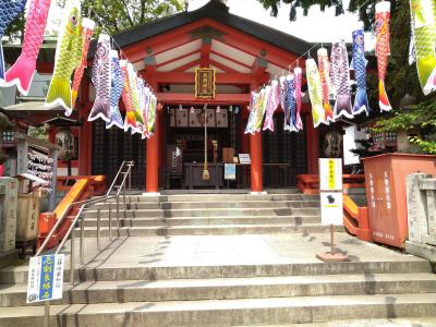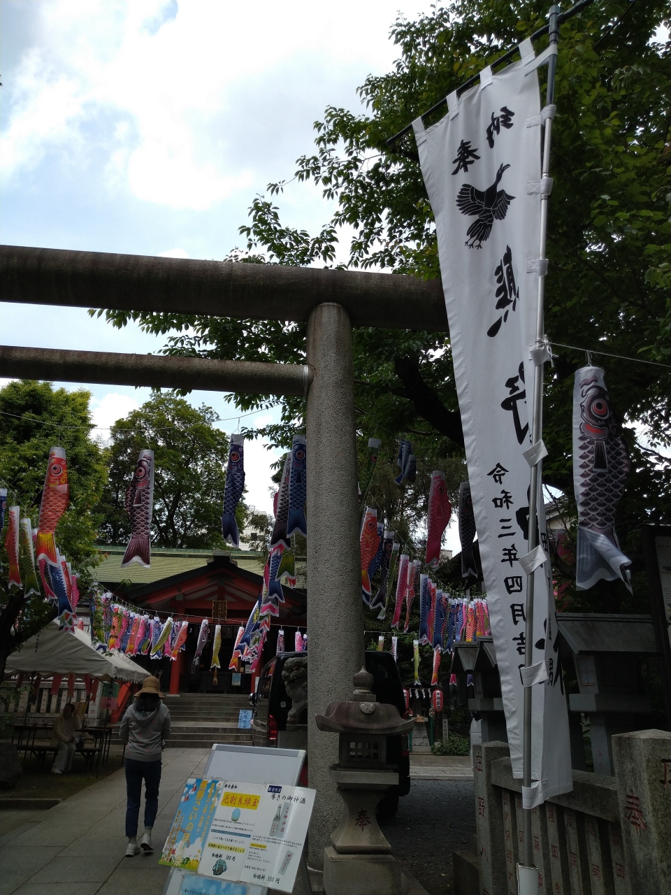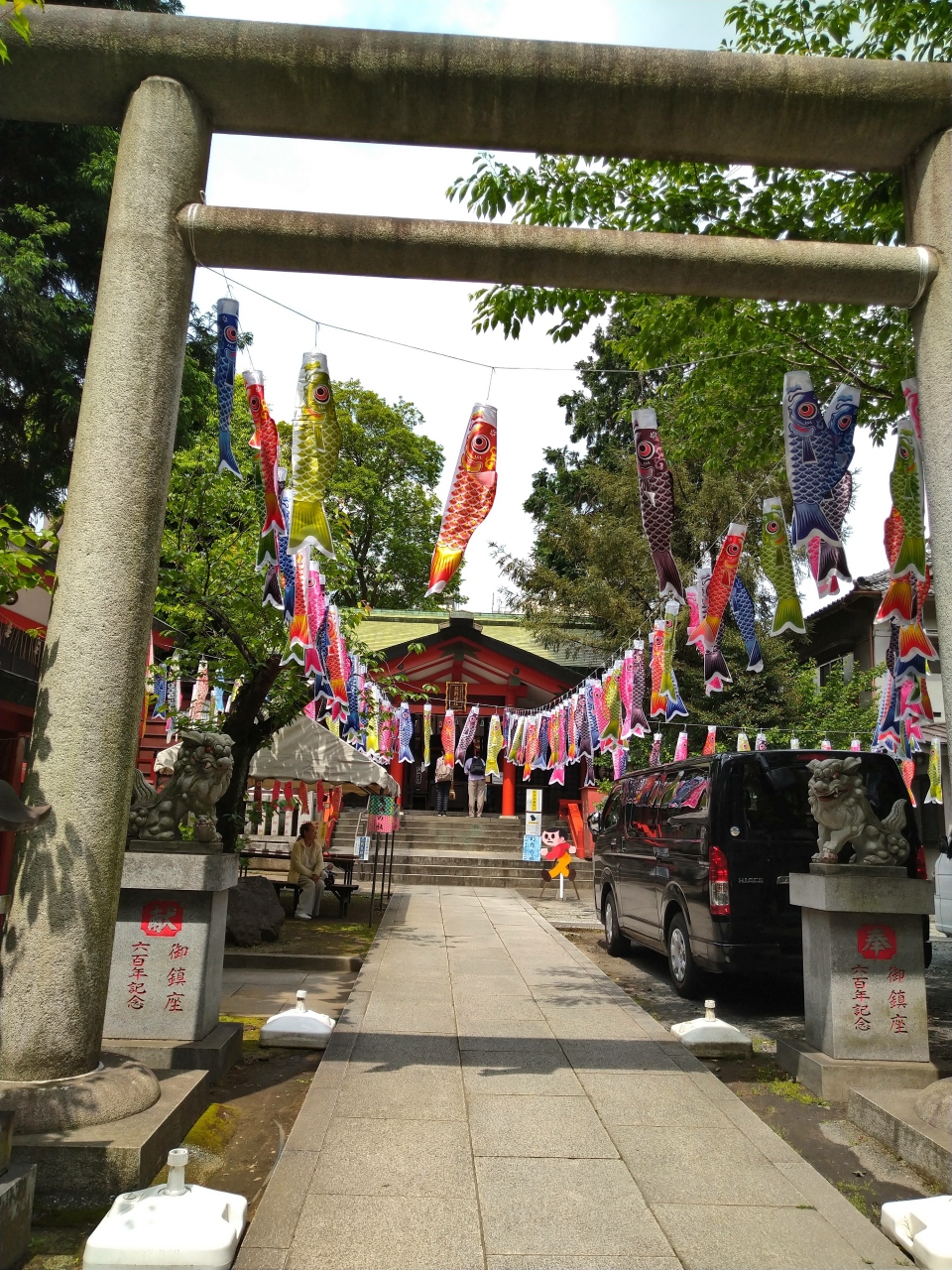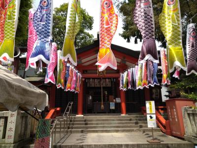 - ”熊野こいのぼり祭”で小さな”こいのぼり”が境内に沢山つるされていました。
