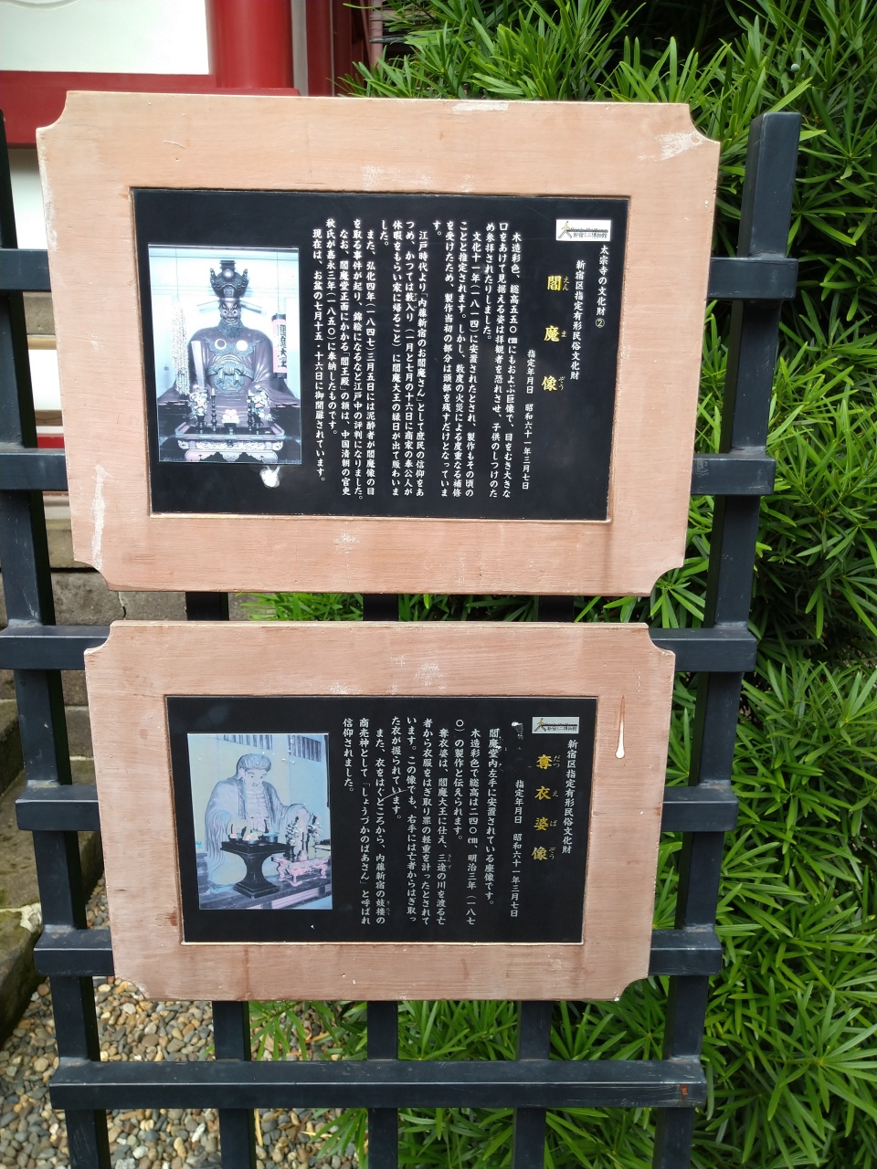 「新宿御苑」エリアを訪れた際に数回に渡り『太宗寺』に立ち寄っていますが、「閻魔像」と「奪衣婆像」が安置されている「閻王殿(閻魔堂)」の格子扉が閉まっており、扉の格子越しに殿内を覗き込んでいました。