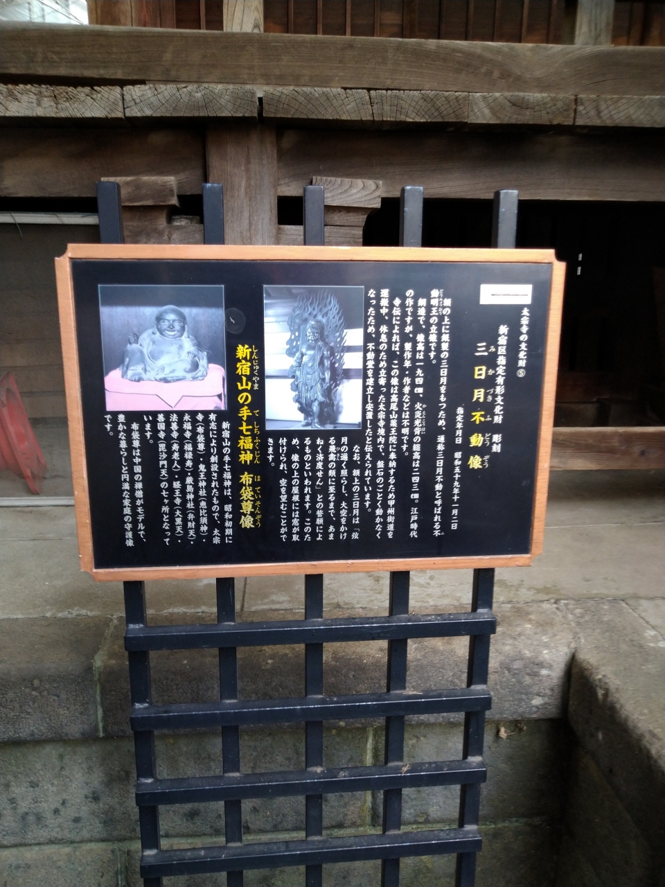 その他に江戸時代の制作とされ1984年(昭和59年)に「新宿区・有形文化財(彫刻)」に指定されている「三日月不動像」、江戸時代より「江戸三大閻魔」と称されて江戸庶民からも親しまれ1986年(昭和61年)に「新宿区・有形民俗文化財」に指定された「閻魔像」および「奪衣婆像」など見どころの多い寺院です。