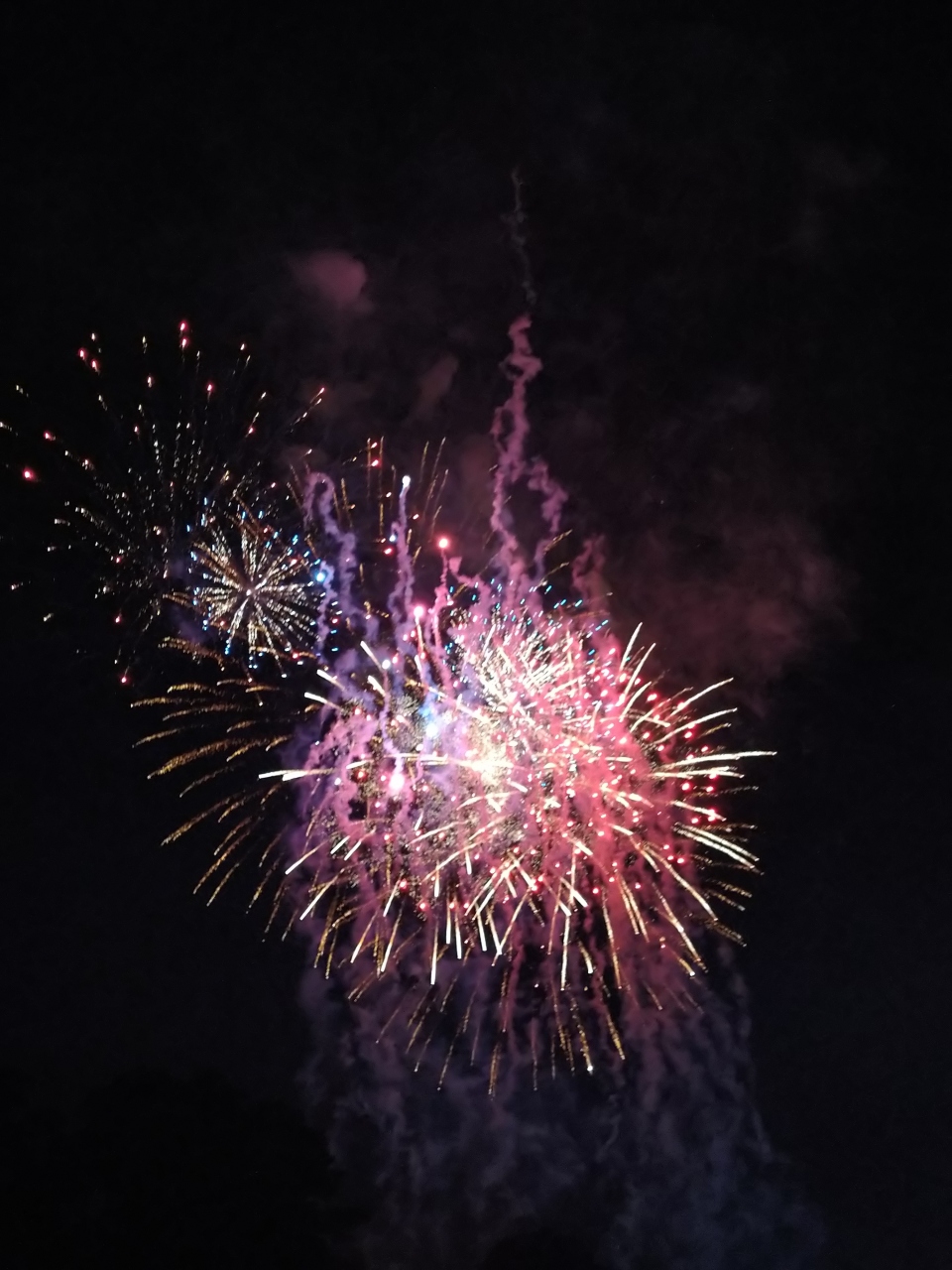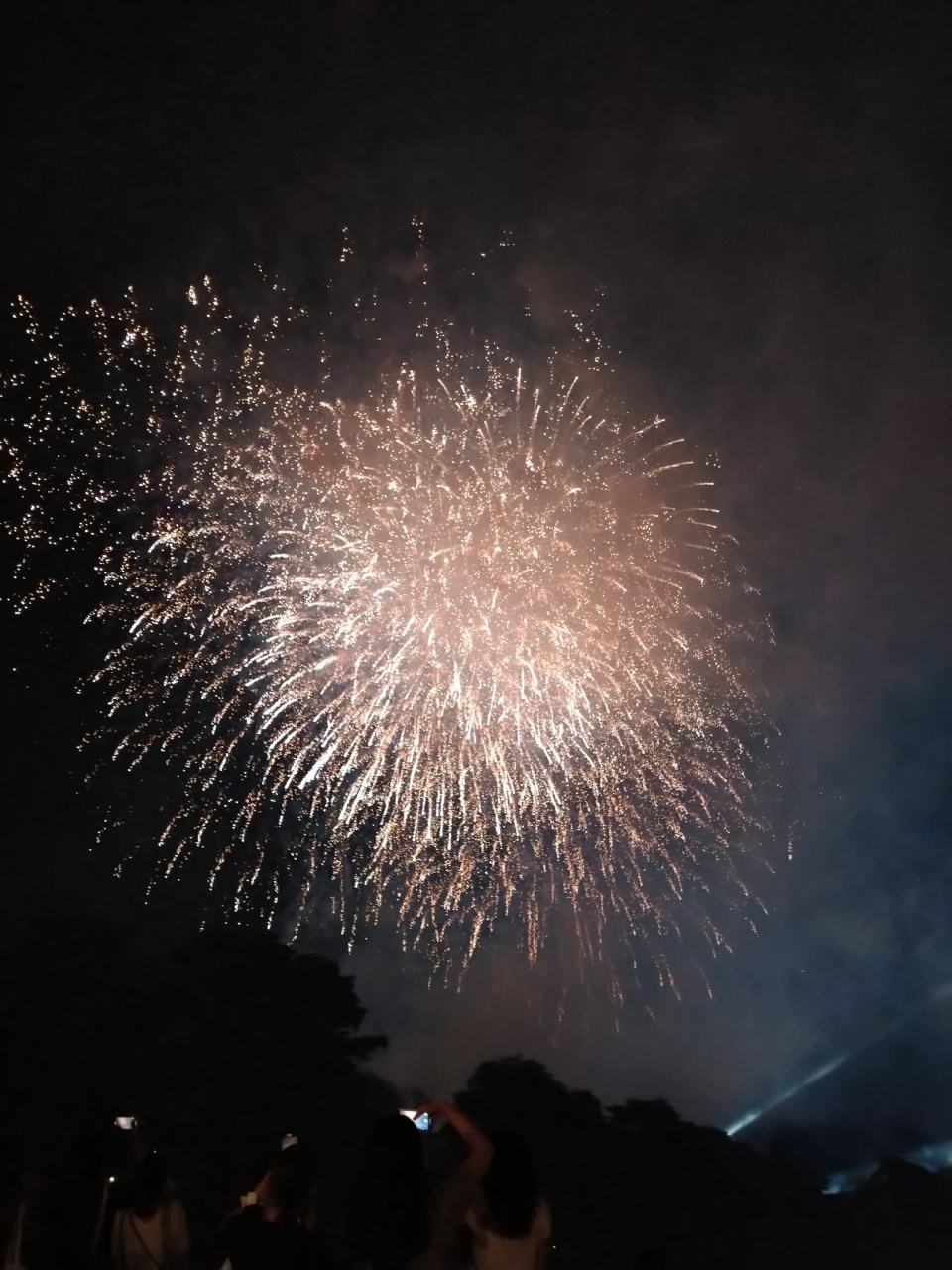 花火の火薬を包む紙の破片が降ってくるほどの間近で打ち上げられる花火は迫力があります!