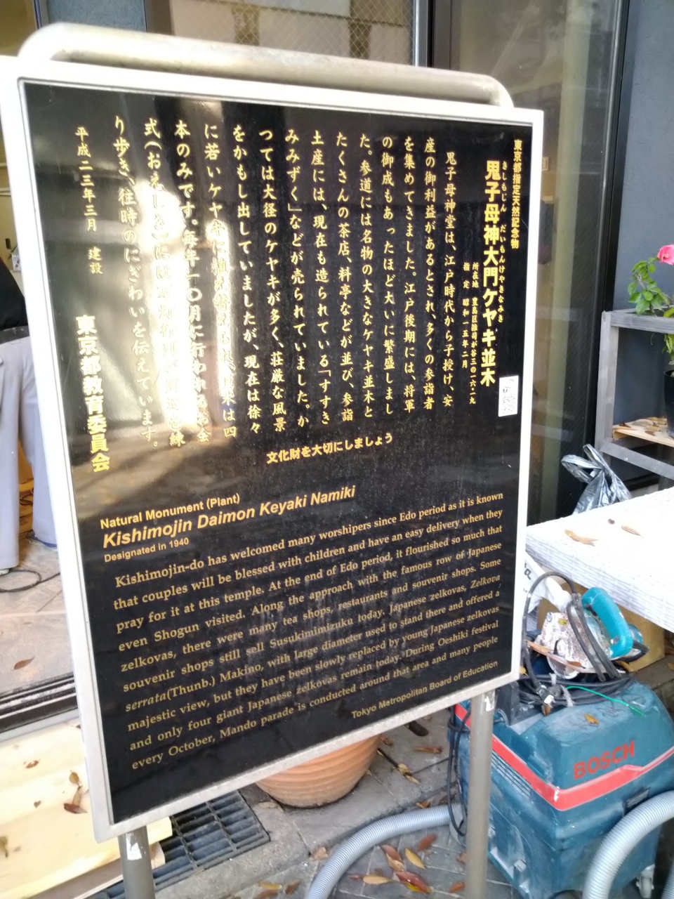 その後に参道の下水本管敷設工事および道路整備工事などに伴い伐採される樹木もあり東京都所有の『ケヤキ並木』も減ってきていますが、1940年(昭和15年)に地元有志の方々により発足した「鬼子母神 大門欅並木 保存会」の活動などにより豊島区の所有となる新たな若木の補植も実施されています。