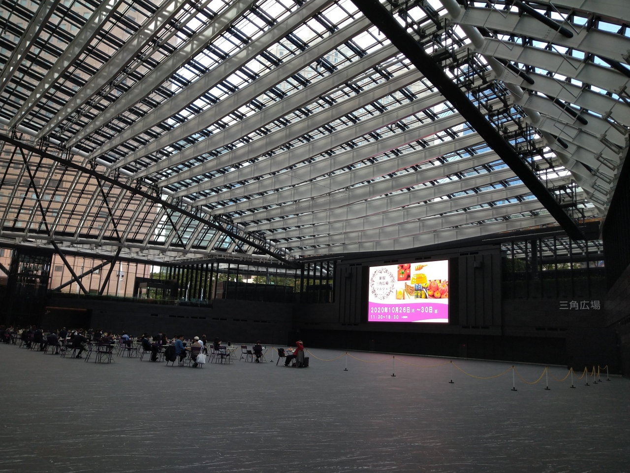 『新宿住友ビル』の7階フロアレベルに達するのではと思われる最大天井高さ約25メートルのガラス大屋根で覆われている最大収容人数が約2,000人となる大空間の「三角広場」(メインイベントゾーン)は圧巻です!