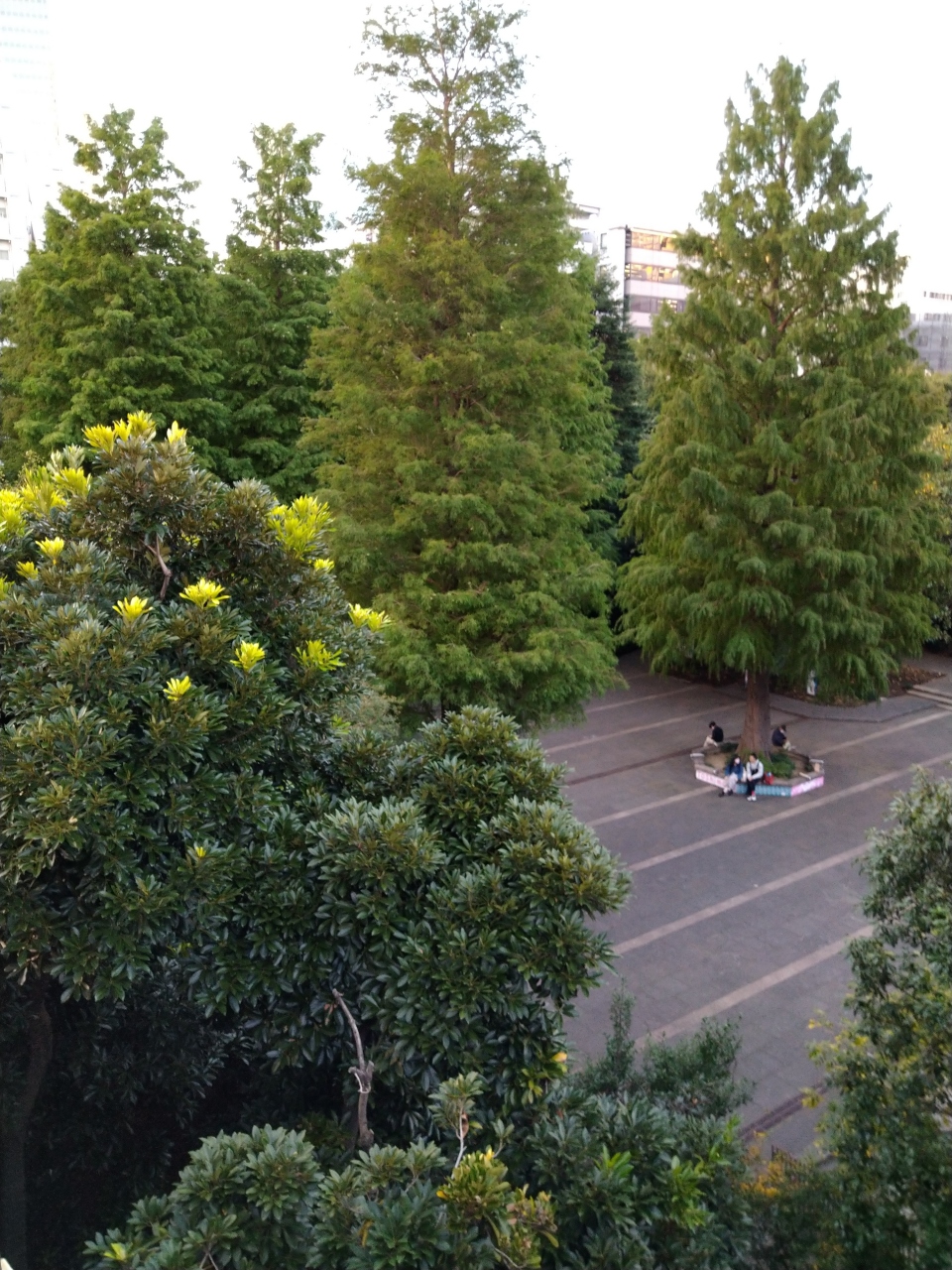 - 平日の午後でしたが、園内ベンチで休憩したり散策する人がまばらでにいる程度でした。