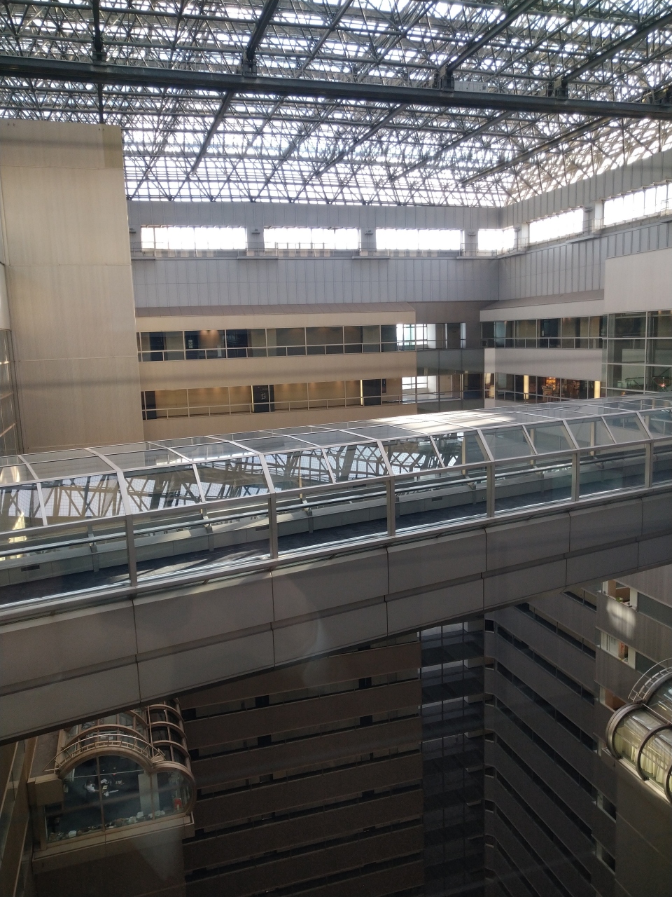 最大天井高さ約25メートルのガラス大屋根で覆われた”三角広場”の大空間は圧巻です!