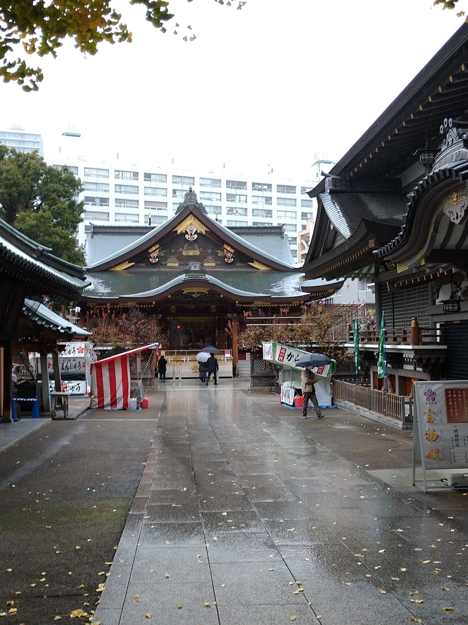 権現造りの本殿建物は、老朽化のため1995年(平成7年)に建て替えられた新しい建物となっており、境内の建造物としては南側に位置する表鳥居が最も古く徳川幕府・第4代将軍「徳川家綱」の時代となる1667~8年(寛文7~8年)に寄進されたとされる鋳銅製の鳥居(総高4.95メートル、総幅6.81メートル、柱根元径0.39メートル)で1970年(昭和45年)に東京都の「有形文化財」に指定されています。