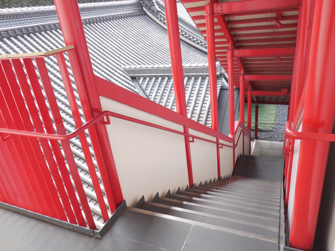 今回は、「歌舞伎座」夜の部公演の観劇で16時開場に合わせて「歌舞伎座」前で待ち合わせをしていましたが、予定の2時間前に到着したので、初めて「歌舞伎座タワー」5階にある歌舞伎の世界を実際に体験しながら楽しめる「歌舞伎座ギャラリー」(有料エリア)と回遊式の和風庭園となる「屋上庭園」(無料エリア)から「歌舞伎座」の大屋根三州瓦を間近で望める屋外鉄骨階段の「五右衛門階段」を4階に降りて『四階回廊』(無料エリア)に立ち寄りました。