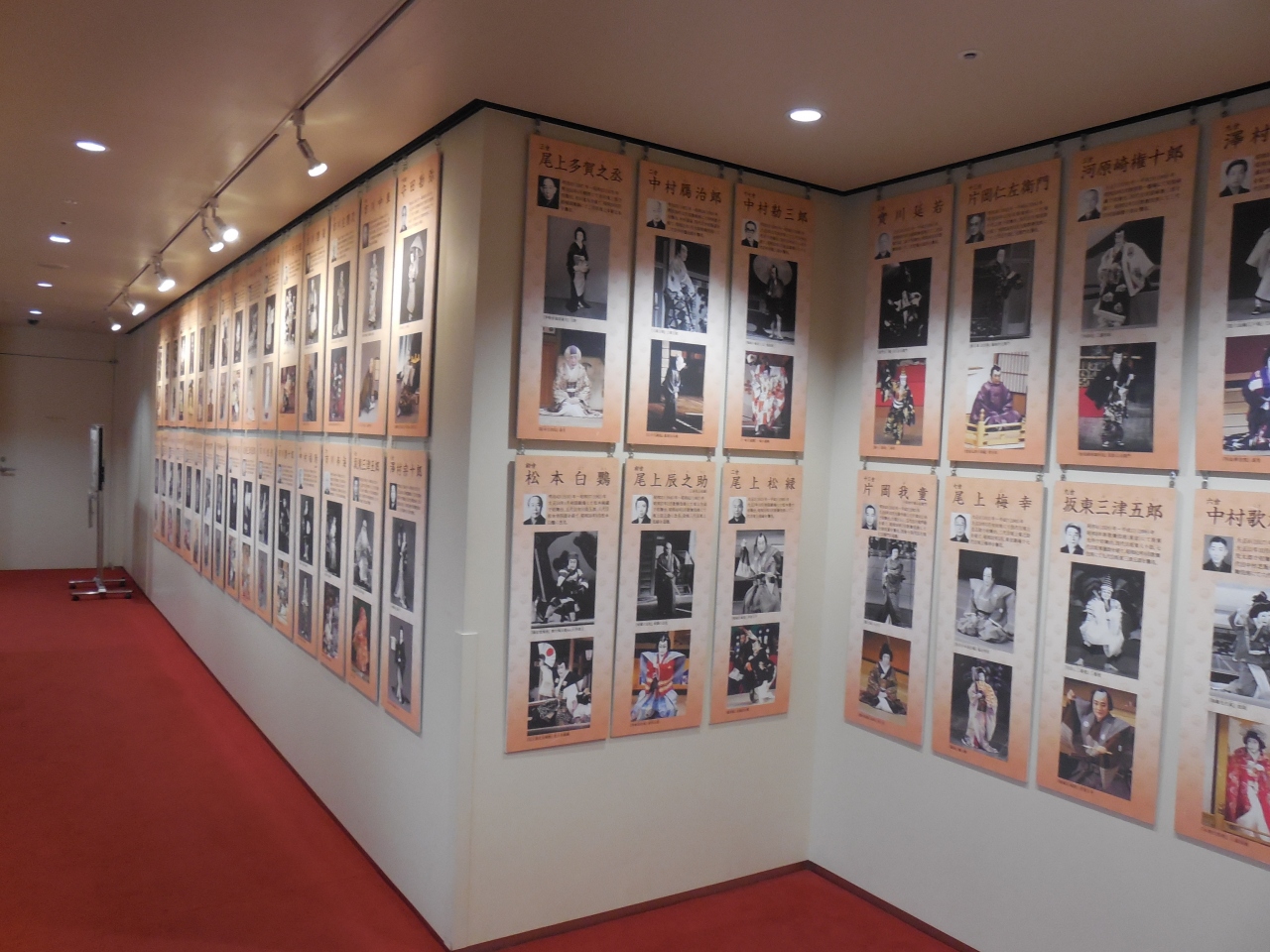 「五右衛門階段」から4階建物内に入ると右手側に「歌舞伎座」4階客席となる「一幕見席」ロビーにつながる通路となっており、左手側が『四階回廊』エリアとして壁面に”想い出の歌舞伎俳優”として往年の名俳優の顔写真がずらりと掲示されています。