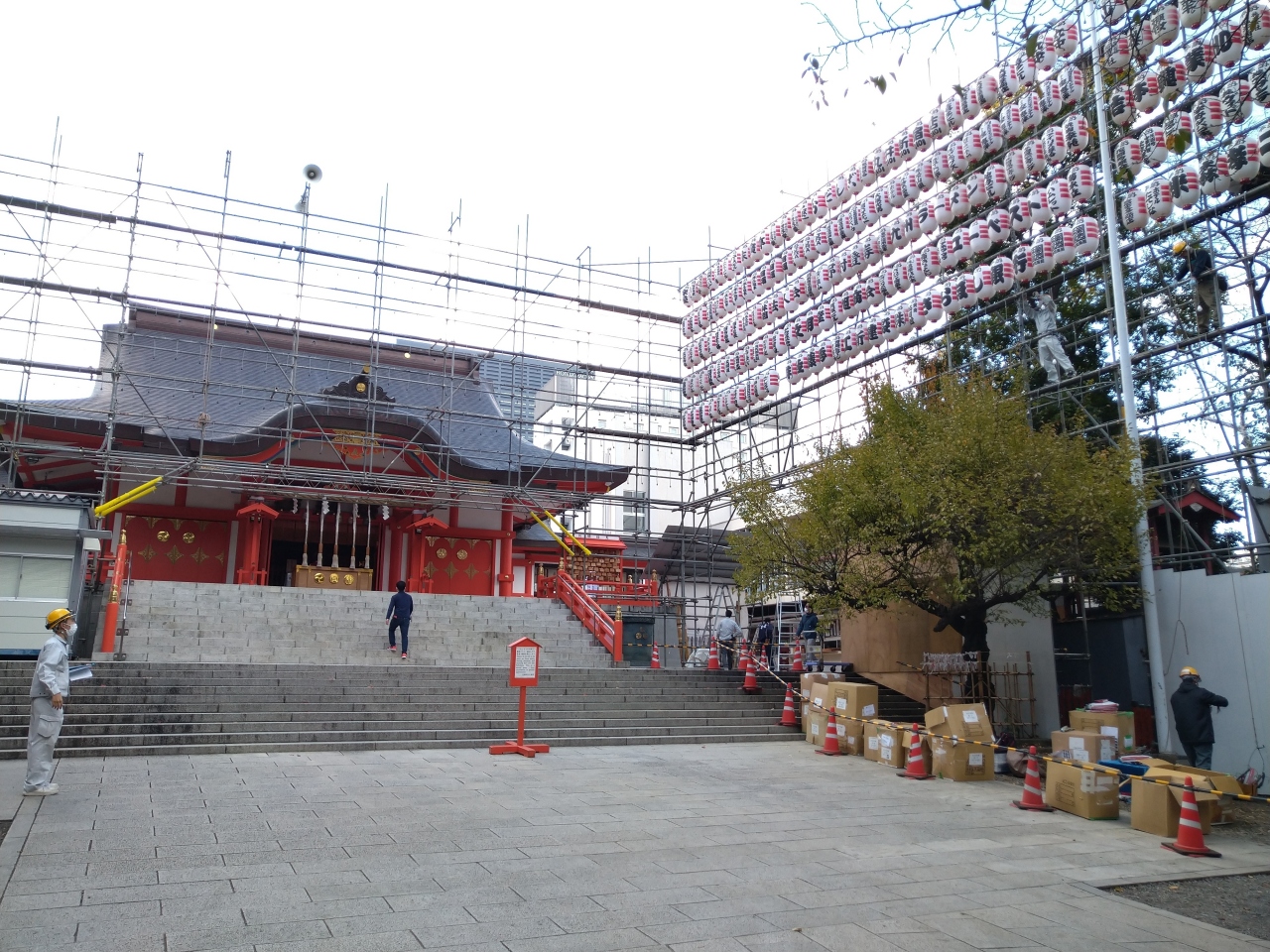 近年では、1967年(昭和42年)に劇作家「唐 十郎」氏が率いる劇団により「花園神社」境内に紅テントを設置して公演が行われ話題となるなど現在もさまざまな公演活動が「花園神社」境内で行われており、芸能にまつわる縁の深さを感じます。