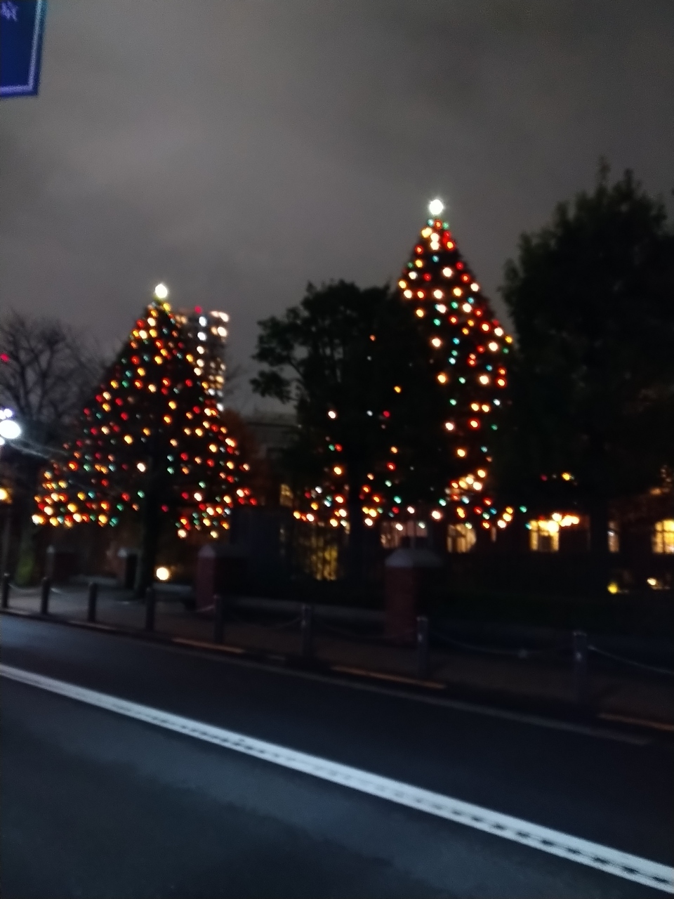 この2本の「ヒマラヤ杉」は、「学生キリスト教団体」の学生で結成された「クリスマス実行委員会」によりクリスマス期間限定で、”クリスマスイルミネーション”が実施されています。