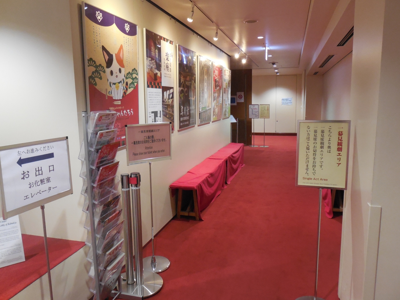 ちなみに『四階回廊』とつながる「歌舞伎座」4階客席は、1階正面玄関から入場する通常の指定席チケットによる1階から3階までの客席と異なり、気軽に好きな一幕だけから鑑賞できるように先着順で当日販売の自由席チケット専用の「一幕見席」による鑑賞エリアとなっています。