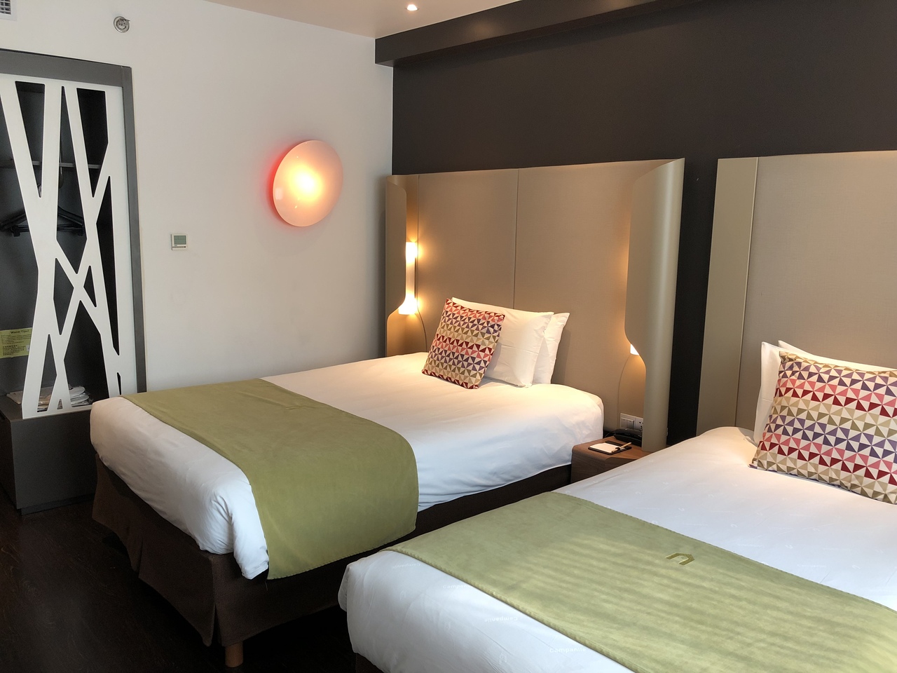 部屋も広くスーツケース2つ余裕で広げることが出来ました。洗面所、シャワールーム共にとても清潔です。毎日水とフランスのクッキーが補充されるので美味しく頂きました。