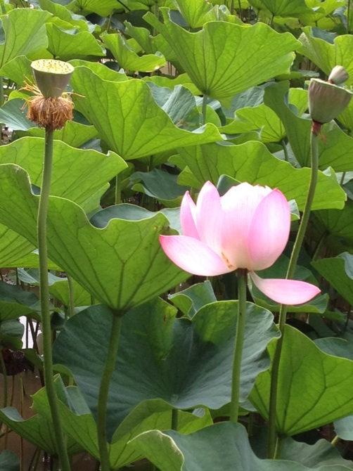 7月訪問時は「大賀蓮」(発掘された2000年ほど前の蓮から大賀博士が発芽、開花させたもの)が見ごろでした。夏はハチが多いので要注意ながら、磐坐と思われる磐を祀る三宝荒神があります。